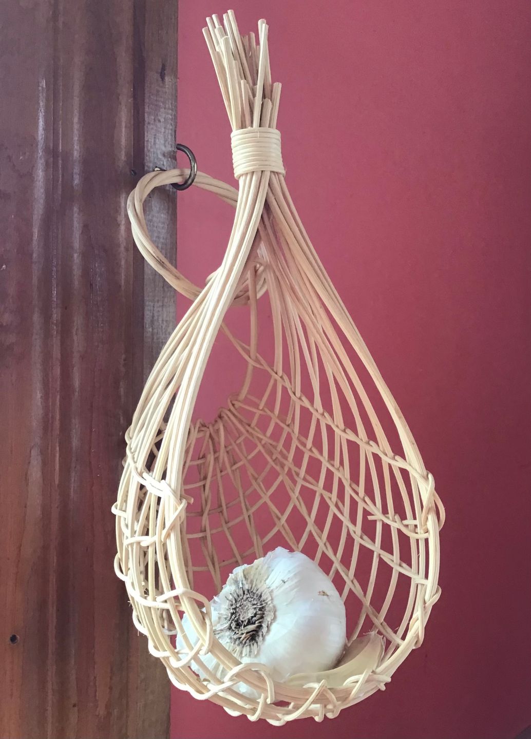 Make a couple of traditional garlic and shallot baskets from cane. Great to use and great as presents to hang on the wall.