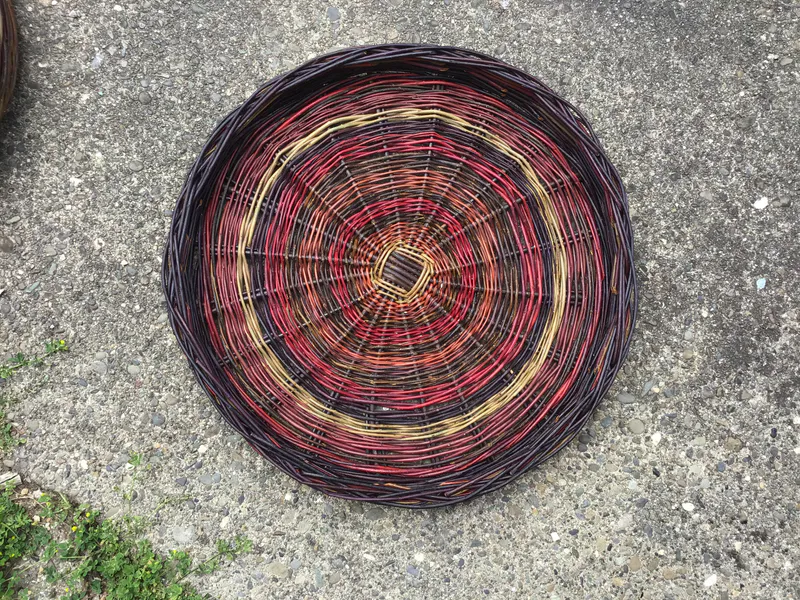 The tray is woven with natural coloured willows and a variety of dyed willows. Trays can be woven in many colour combinations , let me know what you prefer.